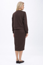 Комплект женский 2-х предметный состоит из жакета и платья. Жакет прямого силуэта понизу с притачным поясом, с застёжкой по притачной планке на петли, пуговицы. Перед с нагрудными выточками. Рукава втачные, одношовные, длинные понизу с притачными манжетами. Платье полуприлегающего силуэта. По горловине и пройме бейка. Перед с нагрудными и талевыми выточками. Спинка со средним швом и талевыми выточками.