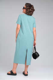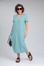 Платье прямое свободного силуэта с "У"образным вырезом горловины, карманом справа и короткими рукавами с декоративными патами