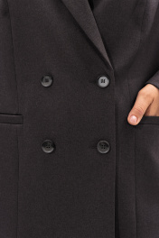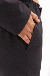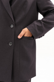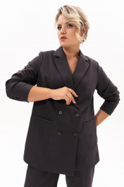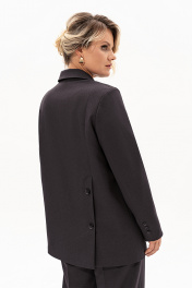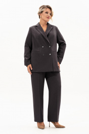 Элегантный женский костюм, в котором классика встречается с современными акцентами. Жакет выполнен в двубортном исполнении с выразительным пиджачным воротником, подчеркивающим строгость и стиль. Рельефы на полочках от плечевого шва придают силуэту структурность, а прорезные карманы в листочку добавляют практичности и утонченности. Особое внимание привлекает спинка: асимметричный рельеф на правой части, переходящий в шлицу, оформленную декоративными пуговицами — неожиданный и эффектный штрих. Втачные двухшовные рукава завершены аккуратными шлицами с тремя пуговицами, что добавляет костюму благородства и внимания к деталям. Брюки — лаконичные, с функциональными карманами и гульфиком на молнии. Удобный пояс с эластичной тесьмой по бокам делает посадку комфортной, не нарушая внешней строгости образа. Этот костюм — идеальное сочетание женственности, силы и комфорта. Он подойдет как для деловой встречи, так и  для повседневного выхода, где важна уверенность и стиль. Длина рукава - 62 Длина брюк - 105 Длина жакета - 77