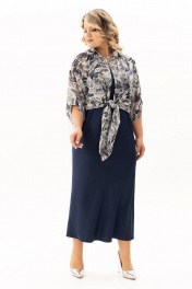 Нарядный двухпредметный комлект, состоящий из рубашки и платья. Рубашка в стиле casual выполнена из принтованной ткани с крэш-эффектом и мелким леопардовым узором — оригинальное сочетание естественной динамики и актуального принта. Модель без застёжек, с воротником на стойке и удлинёнными концами полочек, которые можно элегантно завязать на талии. Рукава длиной 3/4 собраны на паты с декоративной пуговицей, создавая расслабленный и волнующий образ. Второй элемент комплекта — платье из струящегося атласа, кроенное по косой, что обеспечивает красивую посадку и мягкое облегание по фигуре. Углубленная горловина добавляет лёгкой чувственности, а нагрудные вытачки от проймы подчёркивают линию груди. Этот комплект легко адаптируется под разный стиль: носите рубашку отдельно с джинсами, а платье дополните сандалиями и украшениями, подходящими для романтичных прогулок или встреч в городе. Длина изделия - 132 Длина блузы - 62 Длина рукава с плечом - 55