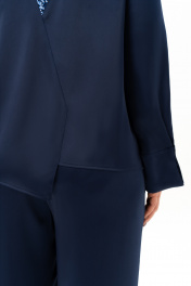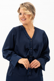 Нарядно- повседневевя , элегантная женская блузка — настоящая находка для тех, кто ищет идеальный образ на праздник, свадьбу или важный вечер. Безупречно смотрится на большом мероприятии, создавая образ, полный уверенности и шарма. Блуза выполнена из шелковистой ткани с приятной фактурой. Блузка с длинными струящимися рукавами выглядит очень изящно и очаровательно. Блузка без воротника, застежка на петли и пуговицы по планке, с V – образным вырезом горловины. Спинка с декоративным элементом из паеток. По переду вдоль планок заложены складки и обработан кант из паеток. Изделие асимметрично по низу. Боковые швы перенесены в линию рельфа полочки и спинки. В рельефах полочки обработаны разрезы. Рукав со складкой по шву притачивания манжеты. Прямого силуэта с втачным , длинным рукавом. С данной блузой можно создать красивый костюм или комплект строгого силуэта — идеальное сочетание для торжеств и даже для делового офисного дресс кода. Подходит для женщин больших и полных размеров, продуманный крой визуально стройнит, подчёркивает талию и скрывает лишнее. Создайте идеальный образ — выберите блузу от "Альгранда" и подчеркните свою индивидуальность! Длина изделия - 68 Длина рукава - 62