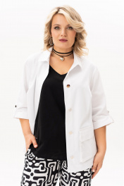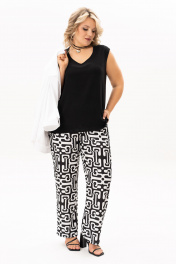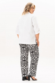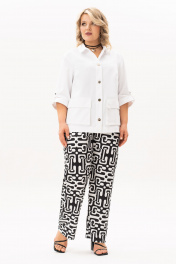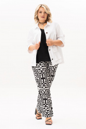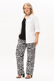 Стильный, современный, трендовый комплект с джинсовой курточкой , брюками и блузв для повседневной носки, торжественного мероприятия, в офис, школу или на прогулку. Приобретая один комплект, Вы покупаете несколько образов, каждая единица которого универсальна, поэтому может сочетаться со многими вещами из Вашего гардероба. Стильный вариант для красивого женского образа – сочетание белого джинсового жакета с брюками прямого кроя из принтованной ткани и контрастной майкой. Жакет-куртка прямого кроя с рельефными швами и кокетками по переду и спинке. Накладные карманы с клапанами и декоративные металлизированные пуговицы - узнаваемые нотки вневременной джинсовой мелодии. В рукавах предусмотрены паты с пуговицей, что позволяет сделать рукава короче. Жакет просто необходим при создании как романтического, так и спортивного образа. Майка с рукавом «крылышко», горловина углубленная V-образной формы. Брюки прямого кроя с боковыми карманами и поясом частично на резинке. Не упустите возможность приобрести брючный комплект с большим выбором размеров и ощутить комфорт в носке качественной и стильной одежды! Длина брюк - 105 Длина жакета - 75 Длина блузы - 72