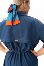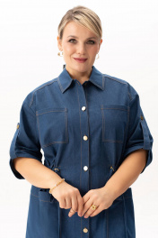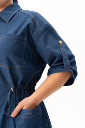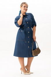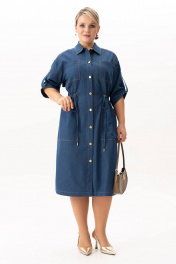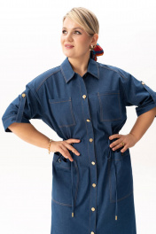 Стильное джинсовое платье больших размеров– это идеальный выбор для женщин, стремящихся сочетать стиль и комфорт в одежде. Модель выполнена из легкого хлопка, что обеспечивает комфорт в течение всего дня. Подходит для различных сезонов — весной и летом оно станет незаменимым элементом гардероба. Этот универсальный вариант представлен в больших размерах, что позволяет каждой женщине найти свой идеальный стиль. Оно прекрасно смотрится с кроссовками, что делает его отличным выбором для активных женщин. С этим нарядом вы можете смело отправляться на деловые встречи или в ресторан, благодаря элегантному крою, аккуратной застежке на петли пуговицы, поясом на кулисе платье скрывает недостатки фигуры, придавая ей стройный вид, а наличие карманов добавляет практичности. По спинке имеется средний шов, шлица и отлитная кокетка в верхней части спинки. Особенностью этой модели является декоративная кокетка , напоминающая плащ. Рукава с патами на петли пуговицы, позволяют регулировать длину , гармонично дополняя классический фасон платья с воротником рубашечного типа. Длина ниже колен создает образ, который легко сочетать с различными аксессуарами. Вечером такое платье отлично дополнит вечерний образ, а днем подчеркнет вашу индивидуальность и профессионализм. Длина изделия - 115