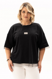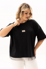 Женская блузка - универсальный предмет гардероба, который подойдет для любого случая . Блуза двойная с сеткой станет незаменимой и базовой в любом гардеробе. Мягкая, приятная к телу сетка смотрится дорого и элегантно, создавая эффектный наряд. Не упустите возможность приобрести эту многофункциональную блузку и создать множество стильных образов как для работы, так и для повседневной и праздничной жизни. Блуза легко вписывается в праздничную одежду и деловой образ. Ткань блузки практически не мнется, что позволяет выглядеть безупречно в течение всего дня. Носите ее с джинсами для легкости и свободы, с юбкой для женственности или с брюками для делового образа. Благодаря разнообразию вариантов комбинирования, вы будете выглядеть модно и стильно в любой ситуации. Длина изделия - 62, сетка-66 Длина рукава с плечом - 45, сетка-50