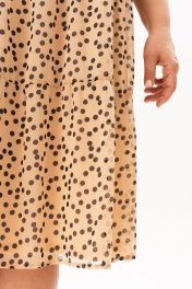 Великолепное шифоновое платье в горошек, в три яруса воланов, собранных на сборку - хит всех сезонов. Эта стильная и оригинальная деталь гардероба поможет сакцентировать внимание на красивой фигуре, скрыть недостатки нестандартной комплекции и сделать ее более изящной. Универсальное и практичное шифоновое платье свободного силуэта, длиной чуть ниже колена. На переде платья есть нагрудные вытачки. Вырез горловины круглый. Рукав втачной, декорирован патой на петлю и пуговицу. Платье на подкладке. Модное платье непременно поможет создать нужное настроение с нотками лёгкости и беззаботности. Платье актуально как свадьбу, день рождения, выпускной, так и просто прогуляться по набережной! Длина изделия - 115 Длина рукава - 32