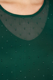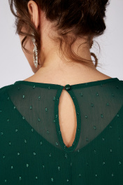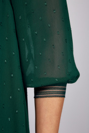 Элегантное платье из шифоновой ткани с оригинальным принтом. Горловина овальной формы, нагрудные вытачки направлены от бокового шва к центру груди, спинка со средним швом и каплевидной застежкой на пуговице. Низ платья обрамляет волан, наполняя образ воздушной многослойностью. Рукав втачной, одношовный, низ рукава собран на эластичную декоративную тесьму. Платье на трикотажной подкладке. Нарядное платье, в котором Вы будете выглядеть женственно и романтично. К платью прилагается съемный пояс.  Длина изделия - 115 Длина рукава - 50