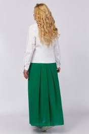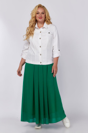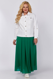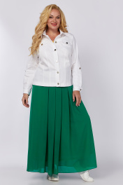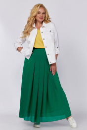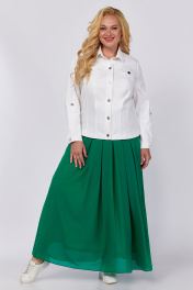 Женский юбочный костюм - идеальное решение для создания стильного и делового образа. Сочетание белого джинсового жакета с шифоновой юбкой из принтованной ткани. Жакет-куртка прямого кроя с рельефными швами и кокетками по переду и спинке, накладные карманы с клапанами и декоративные металлизированные пуговицы - узнаваемые нотки вневременной джинсовой мелодии. В рукавах предусмотрены паты с пуговицей, что позволяет сделать рукава короче. Комфортная, нарядная, длинная юбка-трапеция из шифона с обработанными бантовыми складками по талии. В боковой шов вставлена потайная молния. Юбка на поясе на петлю и пуговицу и частично на резинке. Лаконичный и элегантный фасон костюма позволит носить его в повседневной жизни, а также как праздничный или вечерний наряд. Покупая этот костюм, Вы приобретаете два полноценных изделия: жакет и юбку, благодаря которым можно сделать несколько образов. Длина рукава - 60 Длина жакета - 57 Длина юбки - 102
