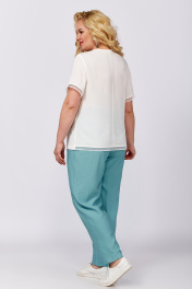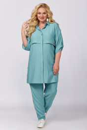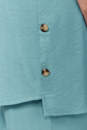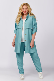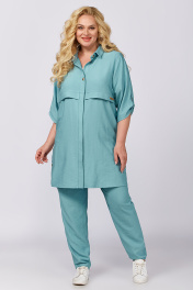 Брючный женский комплект - это идеальный выбор для тех, кто хочет выглядеть стильно и элегантно. В комплект входят блузка, брюки-бананы и рубашка. Модель выполнена из качественной костюмно–плательной ткани. Рубашка классического кроя с воротником имеет рукава длиной ¾ с патой на петлю и пуговицу, асимметричный низ и обработанные шлицы в боковых швах, которые декорированы пуговицами; застежка на петли и пуговицы. Рубашка идеально подчеркивает фигуру и создает ощущение комфорта, благодаря мягкому материалу. Модные брюки-бананы имеют свободный крой и высокую посадку с застежкой на молнию и пуговицу, и резинкой сзади, что обеспечивает удобство и комфорт при надевании, подчеркивает талию и делает силуэт более изящным. Ткань мягко облегает фигуру, создавая струящийся эффект, и добавляя при этом дополнительную свободу при ходьбе. Блуза прямого силуэта декорирована созвучным по цвету кружевом по низу рукава и спинке. Ткань очень приятная на ощупь и нежная к телу. Этот молодежный наряд станет отличным выбором для вечерних выходов, деловых встреч или романтических свиданий, а также для удивительных фотосессий. Такой комплект просится в гардероб! Длина рукава - 40 Длина брюк - 105 Длина жакета - 86 Длина блузы - 64 Длина рукава блузы - 24