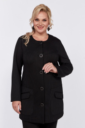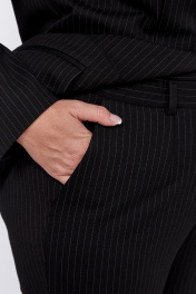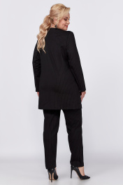 Стильный костюм -двойка состоит из жакета и брюк. Трикотажная ткань в полоску с хорошим стрейч-эффектом добавит комфорт при носке изделия. Жакет удлинённый, полуприлегающего силуэта, без воротника. Спинка со средним швом. По переду жакета есть рельефные швы от пройм, большие накладные карманы, на которых расположены клапаны в рамку. Жакет без подкладки. Застёжка на петли и пуговицы. Рукав втачной, длинный, двухшовный. Удобные и комфортные брюки прямого силуэта со стрелками в этом комплекте - незаменимая в гардеробе вещь, которая подчеркнёт всю утончённость женской натуры и позволит всегда чувствовать себя комфортно. Перед с застёжкой на молнию и пуговицу, карманами-хулиганами. Пояс в области боковых швов дополнен эластичной тесьмой. Элегантная повседневная модель для города. Длина рукава - 61 Длина брюк - 105 Длина жакета - 82