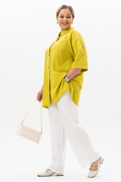 Женский брючный костюм - это всегда стильно! Элегантный дизайн костюма подарит комфорт и уверенность в себе. Летний брючный костюм в стиле сафари из костюмной ткани лен-твил. Жакет рубашечного кроя, свободного силуэта с кокеткой и встречной складкой по спинке, на полочках имеются 2 накладных кармана, воротник отложной, рукав втачной с патой длиной до локтя. В боковых швах есть разрезы. Брюки прямые, свободного кроя, высокой посадки, пояс на резинке. В боковых швах брюк есть карманы-хулиганы . Этот модный костюм-двойка больших размеров отлично подойдет на весну и лето для офиса, праздника, на каждый день, для вечеринки, для прогулок, для отдыха, для работы, для высоких и невысоких девушек и женщин, а также будущих мам. Костюм также поможет создать стильный и незабываемый нарядный образ, став любимой вещью в гардеробе! Длина брюк - 105 Длина жакета - 82 Длина рукава с плечом - 53