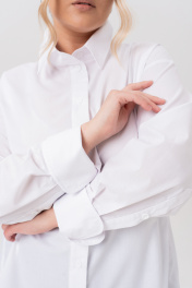 Рубашка оверсайз представляет собой универсальный выбор для современной женщины. Созданная из комфортного материала, эта рубашка обеспечивает идеальное сочетание стиля и удобства. Она отличается свободным кроем и посадкой, что делает её идеальным выбором для повседневного ношения, офисной работы или даже вечеринки. Отлично подходит работникам школы. Рубашка оснащена пуговицами и петлями для застегивания, что обеспечивает удобство в надевании и снятии. На рубашке обработаны воротник и манжеты. Спинка с кокеткой и встречной складкой. Отсутствие декоративных элементов делает её универсальной и подходящей для любого стиля. Гладкая фактура материала и длинные рукава добавляют элегантности и изысканности. Благодаря своему универсальному назначению, эта рубашка подходит как для офисного стиля, так и для повседневного ношения, и в том числе на выход. Её однотонная структура и бескарманная конструкция делают рубашку идеальным выбором для тех, кто ценит простоту и стиль. Длина изделия - р. 54-64 - 77 см; р. 66-68 - 80 см Длина рукава - 61