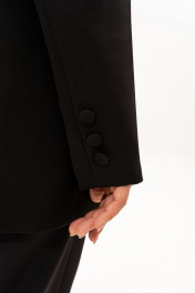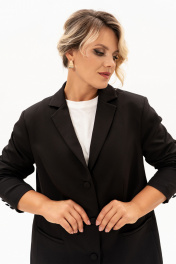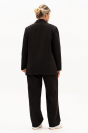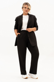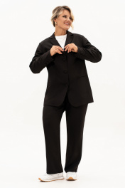 Легкий, утончённый и одновременно уверенный — этот женский брючный костюм создан для тех, кто ценит в образе и комфорт, и поэтичность линий. Прямой жакет мягко обнимает фигуру, не сковывая движений. Его высокая однобортная застёжка на три пуговицы словно намекает на строгость, но закруглённые борта полочек придают силуэту мягкость и женственность. Аккуратные бочки на передней и задней частях создают деликатную форму, а линия спинки со средним швом подчёркивает изящество посадки. Вытачка, направленная от кармана к центру груди, едва заметно формирует прилегание, будто костюм подстраивается под свою хозяйку — легко, нежно и без давления. Карман в листочку сохраняет элегантность, не отвлекая от общего впечатления. Брюки поддерживают общий характер комплекта — лаконичные, прямые, с комфортным поясом на резинке, дополненным имитацией гульфика. Это та самая вещь, которую хочется надеть утром и не снимать весь день. Она не требует усилий, но создаёт ощущение завершённости и внутренней гармонии. Длина брюк - 105 Длина жакета - 77 Длина рукава жакета - 62