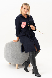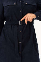 Повседневное женское платье рубашка из вельвета -это сочетание стиля, строгости и утончённости. Спинка со средним швом и разрезами по низу. Универсальное и практичное платье длиной ниже колена, которая будет уместна для любого случая. По переду платья есть нагрудные выточки от пройм и настроченный клапан, который украшен декоративными пуговицами.Также есть карманы в боковых швах. Рукав втачной, длинный, по низу с манжетой и патами. В дополнении к платью идёт пояс . Застёжка спереди на петли и пуговицы на цельнокроеных планках и стояче -отложным воротником на отрезной стойке. Этот вариант вельветового осеннего платья идеален для женщин любого возраста и подходит для любого повода: как деловое на работу, в офис, как нарядное. Женское платье рубашка из штрукса - это отличная базовая модель, которая должна быть в гардеробе каждой девушки. Длина изделия - 104 Длина рукава - 63