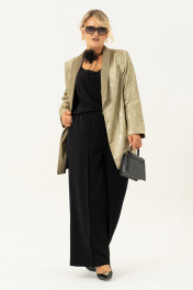 Этот комплект одежды идеально подходит для женщин, которые хотят выглядеть стильно и элегантно на любом мероприятии. Идеальный вечерний наряд, который придаст особый шик Вашему образу. Комплект состоит из брюк , блузы и жакета, и образует абсолютно классическую тройку. Неважно, это деловое собрание или праздничное мероприятие - этот брючный комплект подойдет для любого случая. Базовая модель прекрасно подчеркнет вашу фигуру и придаст вам очаровательный вид. Комплект выполнен из качественной ткани и дополнен жакетом с застежкой на декоративный крючок , которые делают его еще более привлекательным и уникальным. На жакете обработан воротник шалька и карманы в фигурных рельефах. Жакет на подкладке с длинным рукавом. Блуза без рукова из стрейчевой ткани с нагрудными выточками. Брюки-палаццо на эластичной резинке с эмитацией гульфика. По переду расположены карманы с наклонным входом. Нарядный вечерний комплект создаст модный образ на свадьбу, или на вечеринку, а так же подчеркнет Ваш стиль . Брючный комплект женский больших размеров отличается высокой степенью практичности и универсальности,приобретая один комплект- Вы получаете много образов, комплектуя элементы комплекта с другими вещами из своего гардероба! Длина рукава - 62 Длина брюк - 105 Длина жакета - 80 Длина блузы - 70