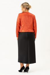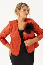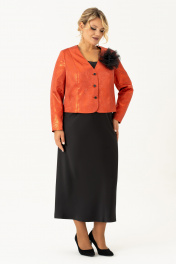 Элегантный женский комплект «двойка» больших размеров — идеальный выбор для женщин с пышными формами, который сочетает в себе комфорт, стиль и изящество. Модель состоит из двух элементов: лаконичного платья из струящегося атласа, кроеного по косой и короткого жакета, полуприлегающего силуэта на подкладке. Такой тандем создает утонченный и женственный образ, который прекрасно подойдет как для вечерних выходов, торжеств, так и для повседневного ношения или работы в офисе. Жакет полуприлегающего силуэта, с центральной застёжкой на петли и пуговицы и с рельефами от плеча по переду, закругленный низ борта. Спинка в жакете со средним швом . Рукав втачной, двухшовный, длинный. Платье кроенное по косой, что обеспечивает красивую посадку и мягкое облегание по фигуре. Углубленная горловина добавляет лёгкой чувственности, а нагрудные вытачки от проймы подчёркивают линию груди. В комплекте идет съемный цветок- брошь. Длина изделия - 131 Длина жакета - 52 Длина рукава жакета - 61