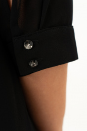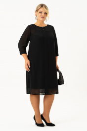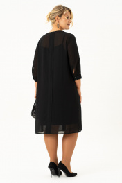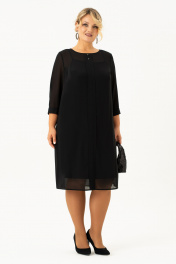 Нарядно повседневное, универсальное, элегантное черное платье с рукавом длиной ¾ на манжете и отдельным подкладом поможет Вам в создании абсолютно разных образов. Платье имеет классический прямой крой с бантовыми складками по переду и по спинке, которые добавляют романтичность и элегантность. Платье подойдет как высоким, так и невысоким женщинам, благодаря своей миди длине. Верхнее платье выполнено из шифона, горловина декорирована пуговицами. Нижнее платье из ткани "масло" на бретелях. Это платье Вы можете легко использовать как вечернее, платье для прогулки или на свидание, на день рождения или клуб, для фотосессии или романтического вечера. Такое платье будет уместно в любом гардеробе. Длина изделия - 106 Длина рукава - 47