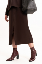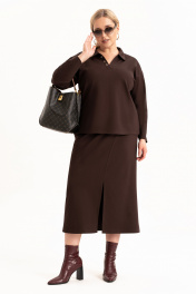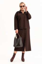 Стильный женский трикотажный костюм с юбкой станет настоящей находкой для каждой современной модницы. Удобный и практичный женский костюм оверсайз прекрасно подходит для любого типа фигуры, помогая выгодно скрыть недостатки и подчеркнуть достоинства. Приталенный силуэт трикотажной юбки с высокой посадкой, а также свободный крой свитшота сделает образ лаконичным, поможет всегда оставаться в тренде. Неповторимый стиль и удивительный комфорт умело сочетаются в этом женском костюме с юбкой. Женский костюм отлично подходит для повседневной носки, а также для более формальных ситуаций. Этот костюм идеально подходит как для офисной среды, так и для обеденного свидания или других повседневных мероприятий. Вы сможете легко создать разнообразные образы, изменяя аксессуары и обувь. В нем каждая сможет чувствовать себя комфортно. Удобный крой позволит не сковывать движения, при этом полноценно облегая силуэт женской фигуры. Костюм выполнен с учетом последних модных тенденций, что обеспечивает его стильный дизайн. Высококачественный трикотажный материал »лакоста», используемый при создании, придает костюму особую мягкость и удобство во время носки. Юбка с разрезом по цетру переднего полотнища и боковыми карманами добавляет нотку женственности и элегантности к образу. Горловина свитшота V-образная с обработанными планками и воротником, с боковыми разрезами и пришивным декором. Свитшот оверсайз отличается не только свободным кроем, но и имеет спущенную линию рукава, выгодно скрывая мельчайшие недостатки женской фигуры. Длина рукава - 61 Длина жакета - 62 Длина юбки - 90