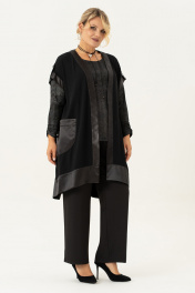 Вы ищете стильный и современный комплект для Дня рождения, корпоратива, Нового года? У нас есть идеальное предложение для Вас - комплект -тройка большого размера, который состоит из кардигана, брюк и ,блузы с длинным рукавом. Вся одежда изготовлена из ткани, обладающей высоким качеством. Важно отметить, что наш комплект-тройка доступен в больших размерах, модель подчеркнет Ваши достоинства и сделает Вас неподражаемой на любом мероприятии и также в повседневной жизни. Брюки прямого силуэта, на резинке не будут сковывать движения. Кардиган выполнен в сочетании двух тканей: шифона и атласа, со спущенной линией плеча. На полочке обработаны накладные карманы, декорированные патой на петлю и пуговицу. Лонгслив изготовлен из тонкого трикотажного полотна с блестящим напылением, напыление не осыпается! Блуза можно скомплектовать с чем-угодно – важно только Ваше чувство стиля и погода за окном. Такой комплект просится в Ваш гардероб и сделает Вас неотразимой! Длина брюк - 105 Длина блузы - 70 Длина рукава кардигана - 100