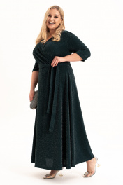 Нарядное платье на запах - это элегантный выбор для любой женщины, подростка или девушки, идеальное сочетание стиля и комфорта. Длинное вечернее платье сочного изумрудного цвета из стрейчевого трикотажного полотна с люрексом. Ткань мягкая, очень приятная к телу. Верхняя часть платья переда и спинки отрезные по линии талии. Лиф переда с эффектным запахом и рельефным бочком. Нижняя часть платья расширена к низу. Рукав втачной, длиной ¾. Платье со съёмным поясом. Съемный пояс и закрытые плечи выгодно подчеркивают женственность фигуры, а рукава длиной три четверти и пикантный V-образный вырез добавляют неповторимости вашему образу. Выполненное из премиальной ткани с блеском, платье представлено в различных размерах. Это универсальное платье подойдет для любого случая: будь то деловая встреча, вечерняя прогулка или особенный праздник. Тренд сезона 2025-2026года. Его можно носить в любое время года, от весны до зимы. Внимание к деталям и трендовый дизайн делают его идеальным выбором для множества мероприятий, включая свадебные фотосессии, ресторанные посиделки или корпоративные вечера. Платье нарядно, кокетливо и подходит как высоким, так и невысоким девушкам. Независимо от вашего стиля или сезона, наше платье будет идеальным выбором. Длина изделия - 132 Длина рукава - 42