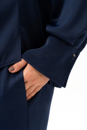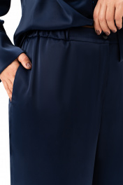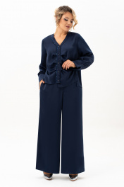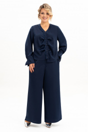 Элегантный женский брючный костюм — настоящая находка для тех, кто ищет идеальный образ на праздник, свадьбу или важный вечер. Классический крой и свободные брюки палаццо подчёркивают достоинства фигуры и дарят комфорт. Нарядный и вечерний стиль — безупречно смотрится на большом мероприятии, создавая образ, полный уверенности и шарма. Блуза выполнена из шелковистой ткани с приятной фактурой. Блузка с длинными струящимися рукавами выглядит очень изящно и очаровательно. Блузка без воротника, застежка на петли и пуговицы по планке, с V – образным вырезом горловины. Спинка с декоративным элементом из паеток. По переду вдоль планок заложены складки и обработан кант из паеток. Изделие асимметрично по низу. Боковые швы перенесены в линию рельфа полочки и спинки. В рельефах полочки обработаны разрезы. Рукав со складкой по шву притачивания манжеты. Прямого силуэта с втачным , длинным рукавом. Брюки с широкими штанинами палаццо выгодно подчеркивают женственные формы, а свободный крой обеспечивает удобство в любой ситуации. На брюках обработаны карманы в боковых швах, по талии пояс с застежкой на молнию и частично на резинке. Красивая двойка строгого силуэта — идеальное сочетание для торжеств и даже для делового офисного дресс кода. Подходит для женщин больших и полных размеров, продуманный крой визуально стройнит, подчёркивает талию и скрывает лишнее. Создайте идеальный образ — выберите стильный женский нарядный костюм с брюками палаццо и подчеркните свою индивидуальность! Длина рукава - 62 Длина брюк - 106 Длина блузы - 68
