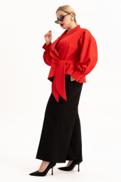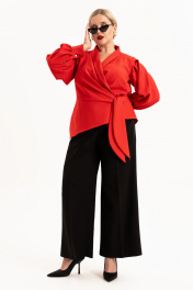 Практичные и функциональные брюки гармонично сочетают комфорт и современный стиль. Незаменимый элемент гардероба для тех, кто ценит удобство в сочетании с актуальным дизайном. Брюки с широкими штанинами палаццо выгодно подчеркивают женственные формы, а свободный крой обеспечивает удобство в любой ситуации. На брюках обработаны карманы в боковых швах, по талии пояс с застежкой на молнию и частично на резинке. Благодаря использованию высококачественных материалов, они обладают отличной плотностью фактуры, обеспечивая удобство и долговечность. Высокая посадка добавляет элегантности и стройности фигуре, а прямая модель идеально подходит для женщин с любым типом фигуры, а также высокого и низкого роста. Благодаря наличию резинки на талии обеспечивают идеальный силуэт и удобство при носке. Классическая модель для полных леди и девушек плюс сайз. Отличное решение для всех кто ищет стильные базовые брюки большого размера. Длина рукава - 62 Длина блузы - 67
