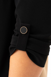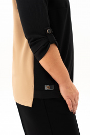 Туника – незаменимая вещь в гардеробе, которую можно скомбинировать и с юбкой и брюками. Изделие из трикотажной контрастной ткани. Универсальная и практичная модель, которая скроет неровности фигуры. Спинка удлиненная, по боковым швам небольшие разрезы. Нижние срез переда и рукавов обработаны планками, которые создают эффект многослойности. Рукав с декоративной патой на пуговице. Эту стильную вещь захочет иметь в своём гардеробе любая модница! Комфортная модель на любой случай. Длина изделия - 74 Длина рукава - 47