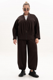 Представляем трех предметный комплект "Алладин". Лёгкий жакет-курточного типа на подкладке, майка и брюки-алладины подходит для девушек любого возраста. Костюмная ткань с хорошим стрейч-эффектом добавит комфорта при носке изделия. Жакет свободного силуэта на подкладке с воротником-стойка. Спинка без среднего шва c отрезной кокеткой, где заложены небольшие складки. По переду жакета есть застроченные складки от низа, карман в листочку, застёжка на молнию и потайной магнит. Рукав втачной, длинный, по низу есть также застроченные складки. Этот демисезонный жакет станет отличным вариантом для весенних и осенних дней, когда хочется выглядеть привлекательно и чувствовать себя комфортно и модно. Майка из вискозы с круглым вырезом горловины, спущенным плечом, коротким рукавом. Удобные и комфортные брюки-алладины-это универсальная модель для повседневной носки, отдыха, прогулок. Этот комплект- незаменимая в гардеробе вещь, которая подчеркнёт всю утончённость женской натуры и позволит всегда чувствовать себя комфортно. Брюки идут с карманами в боковых швах. Пояс в области задней части брюк дополнен эластичной тесьмой, по низу брюк есть фиксаторы и эластичный шнур для регулировки ширины. Свободный широкий силуэт ,мягкая посадка и комфортная резинка на талии обеспечит удобство и свободу движений. Элегантная повседневная модель для города. Замечательный комплект в Ваш гардероб! Длина брюк - 102 Длина жакета - 66 Длина блузы - 69 Длина рукава с плечом - 73 Длина рукава блузы - 31