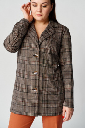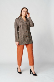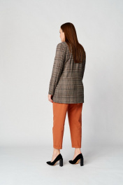 Бежевый и оранжевый костюм из трикотажа: кардиган и брюки Almirastyle 139 клетка/терракот