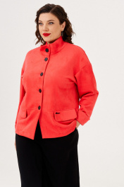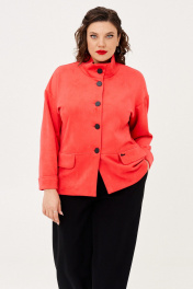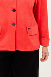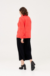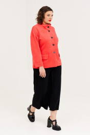 Простой, но стильный комплект состоит из жакета без подкладки и брюки - кюлоты. Жакет прямого силуэта под замшу на трикотажной основе. По переду подрез ниже линии талии, внутренние карманы с клапанами, воротник-стойка. Центральная застежка на петли и пуговицы. Рукав длинный с отворотом по низу. Отделкой служат пуговицы и металлическая нашивка. Брюки-кюлоты на приточном поясе, резинка над боковыми швами. Застежка спереди на молнию. Карманы в боковых швах. 50 размер: ОГ- 112см, ОТ - 112 см, ОБ - 114см; ОТ брюк - 76см, растягивается до 90см, ОБ 110см. 52 размер: ОГ - 116см, ОТ- 116 см, ОБ- 118 см. ОТ брюк - 80см, растягивается до 94см, ОБ 114см. 54 размер: ОГ - 120 см, ОТ - 120 см, ОБ - 122 см, ОТ брюк - 84см, растягивается до 98см, ОБ 118см. Длина жакета 61 см, длина брюк 88см.
