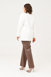 Стильный брючный комплект состоит из жакета и брюк.Удлиненный жакет прямого силуэта на подкладке, двубортный. По переду прорезные карманы с клапанами. Воротник пиджачного типа. Рукав вточной, длиный с отделочными пуговицами по шлице.Линию талию можно подчеркнуть ремнем.Широкие прямые брюки выполнены из экокожи. По переду боковые внутренние карманы, на задних половинках - листочки. Пояс притачной по линии талии, резинка сзади. Застежка спереди на молнию. В 50 размере: ОГ 114 см, ОТ 112см, ОБ 122 см, ОТ брюк 82 см растягивается до 94 см, ОБ 108 см, длина 107см. В 52 размере: ОГ 118 см, ОТ 116см, ОБ 126 см, ОТ брюк 86 см растягивается до 98 см, ОБ 112 см, длина 107см. В 54 размере: ОГ 122 см, ОТ 120см, ОБ 130 см, ОТ брюк 90 см растягивается до 102 см, ОБ 116 см, длина 107см.