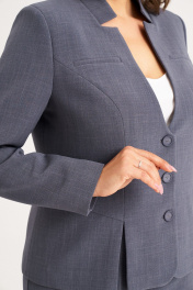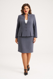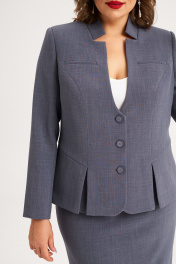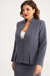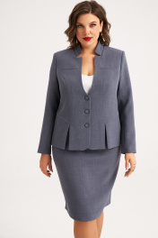 Шикарный женский комплект состоит из жакета и юбки. Жакет полуприлегающего силуэта, на подкладке. По переду прорезы, переходящие в складки, карманы с втачными листочками. Воротник - стойка. Край борта фигурной формы. Юбка на подкладке, заужена к низу. Верхний край обработан обтачками. По среднему шву заднего полотнища застежка на потайную молнию, внизу шлица. 50 размер: ОГ 108 см, ОТ 105 см, ОБ 116 см, ширина рукава 36 см, длина рукава 60 см, длина изделия 61 см, ОТ юбки 88 см, ОБ 108 см, длина 62 см. 52 размер: ОГ 112 см, ОТ 109 см, ОБ 120 см, ширина рукава 38 см, длина рукава 60 см, длина изделия 61 см, ОТ юбки 92 см, ОБ 112 см, длина 62 см. 54 размер: ОГ 116 см, ОТ 113 см, ОБ 124 см, ширина рукава 40 см, длина рукава 60 см, длина изделия 61 см, ОТ юбки 96 см, ОБ 116 см, длина 62 см.