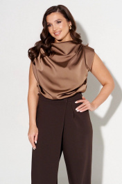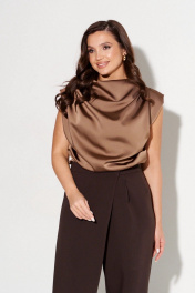 Блузка полуприлегающего силуэта длиной 53см по спинке. Горловина-стойка, плечо спущенное. По переду изделия ассиметричные складки.
