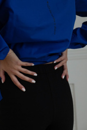 Брюки женские классические имеют ровный крой по всей длине,немного заужены к низу. Посадка по линии талии. Изделие оформлено притачным поясом, спереди карманы с подрезным бочком, сзади пояс на эластичной тесьме-резинке, застёжка на петлю-пуговицу и молнию.
