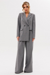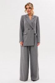 Брюки женские,свободного силуэта,на поясе со шлевками.Застежка на молнию и пуговицу.По переду заложены складки.По бокам действующие угловые карманы.