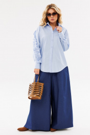 Голубая свободная рубашка с карманами и декоративной рюшей Ambera Style 1097 голубой