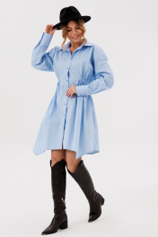 Платье женское А силуэта приталенное за счет резинки на кулисе. Рукав длинный на манжете. Низ фигурный.