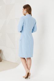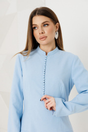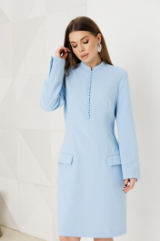 Платье женское приталенного силуэта,выполнено из костюмной ткани.По переду имитация застежки на петли-пуговицы,воротник стойка ,на рукавах шлицы,по спинке застежка на молнию.Изделие на подкладке.