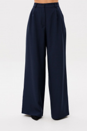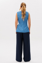 Костюм двухпредметный, состоящий из элегантного женского жилета, полуприлегающего силуэта с застежкой на декоративную тесьму, полукольцо и потайную пуговицу. Жилет на подкладке..Брюки женские,свободного силуэта,на поясе со шлевками.Застежка на молнию и пуговицу.По переду заложены складки.По бокам действующие угловые карманы.