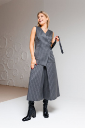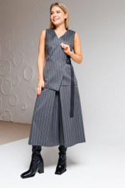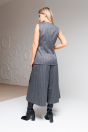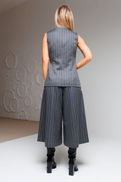 Жилет с застежкой на тесьму и юбка-брюки А-силуэта Ambera Style 2052 серый_полоска