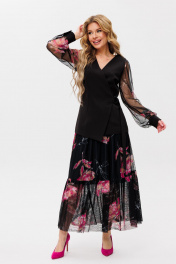 Двухпредметный костюм из сетки и текстиля Ambera Style 2055-1 черный/фуксия