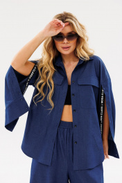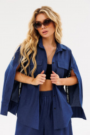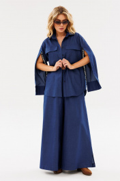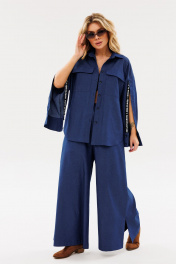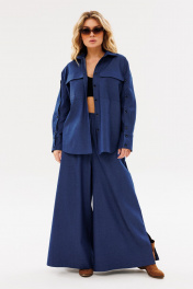 На каждый день комплект из текстиля с юбкой-брюки и рубашкой Ambera Style 2086 синий
