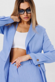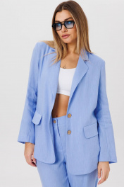 Классический льняной жакет с карманами для делового образа AMIE by Ma Сherie 6005 голубой
