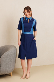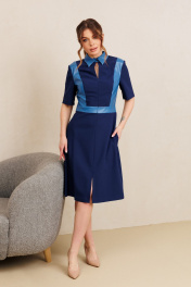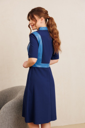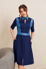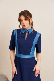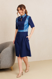 Элегантное и удобное платье с отделочной тканью из эко кожи. В боковых швах распологаются карманы, по переду потайная застежка молния и невысокий разрез. Изделие без подкладки.