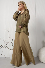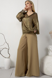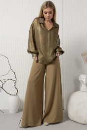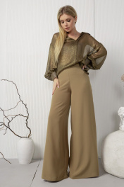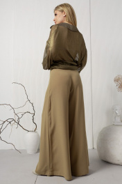 Широкие струящиеся брюки с кокеткой из текстиля AMORI 5202 горчица
