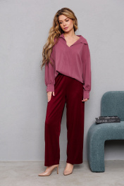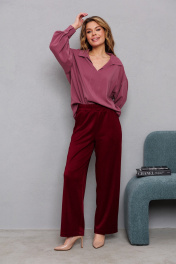 Блуза из текстиля с рукавами и вырезом на груди AMORI 6467 брусника