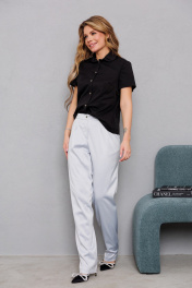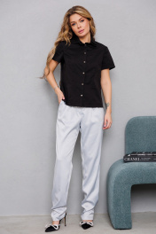 Хлопковая блуза с двухслойным воротником в виде лепестков AMORI 6468 чёрный