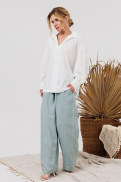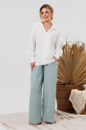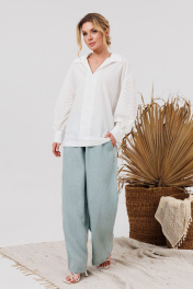 Шикарная блузка из натурального хлопка и ришелье. Очень красивые рукава и большой модный воротник, и горловина уголком переходящая в имитацию планки. ДИ 65 см, ДР от горловины 73 см рост 164; ДИ 70см, ДР от горловины 73 см рост 170.