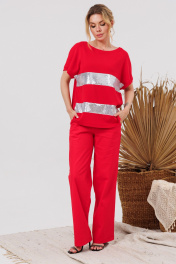 Натуральна трикотажная блузочка с отделкой и серебристых пайеток по переду. ДИ 58 см рост 164; ДИ 62 см рост 170.