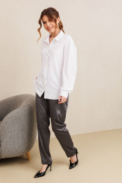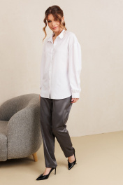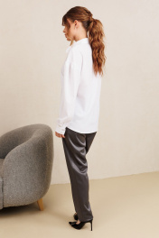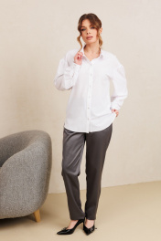 Стильная блузка с очень красивыми пышными рукавами, разрезиками по бокам и застежкой на петли и пуговицы.