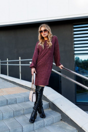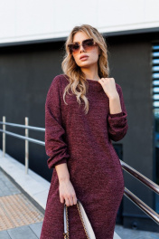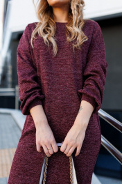 Красное трикотажное платье с рукавами на сборке AMORI 9787 вино